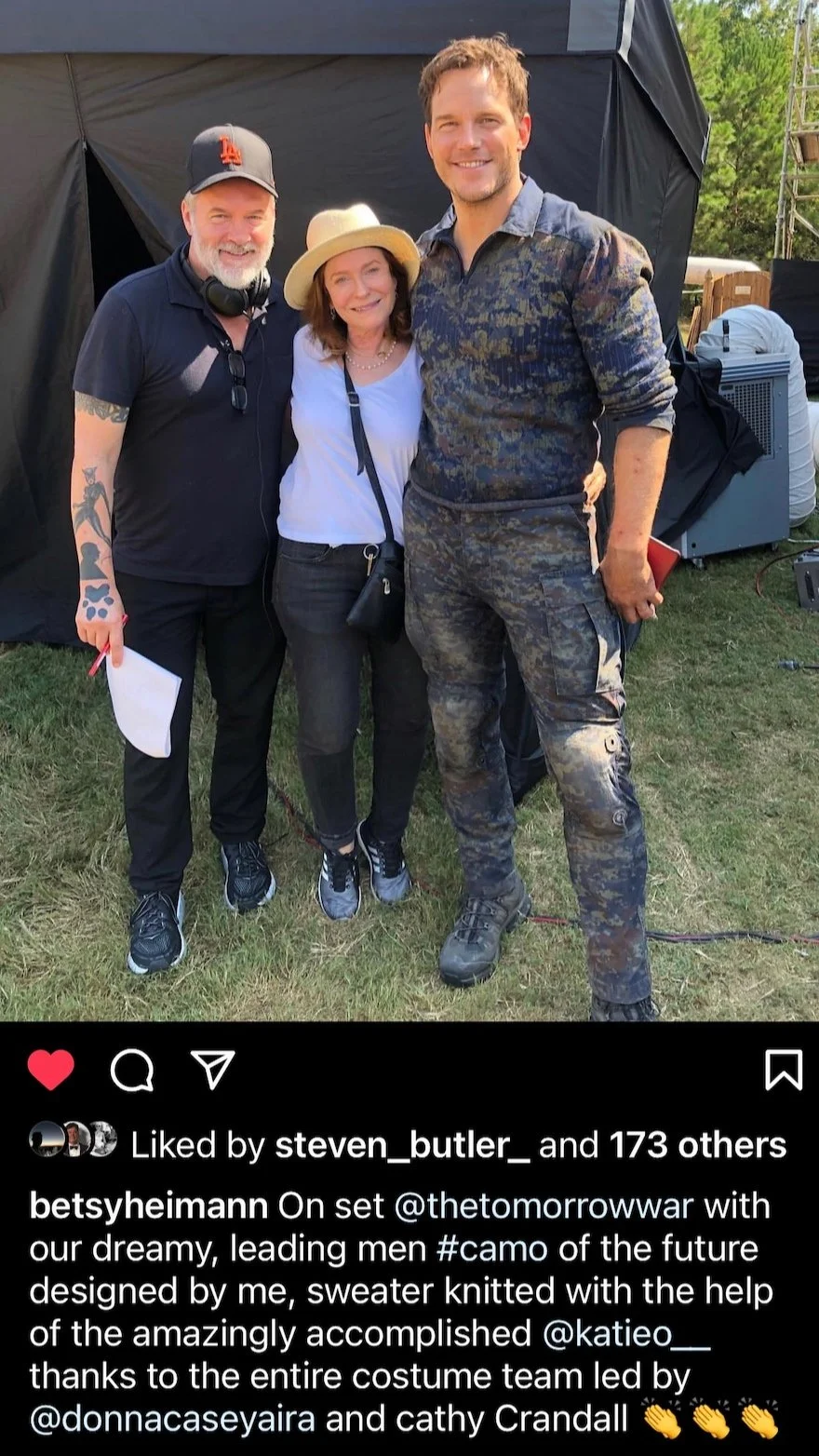 The Tomorrow WarPrime Video 2021 RELEASED JULY 2, 2021Directed by Chris McKay | Costume Design by Betsy HeimannKnitwear Wardrobe Contribution. Iconic Knitted Camouflage Army Uniforms Designed by Betsy Heimann.
